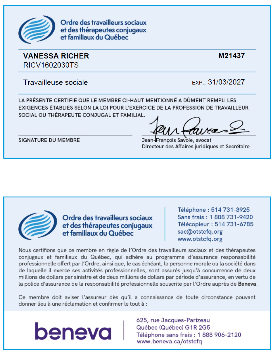 Je suis Travailleuse Sociale Professionnelle et je suis membre en règle de l’OTSTCFQ. Voici un bref survol de mon parcours scolaire et professionnel…